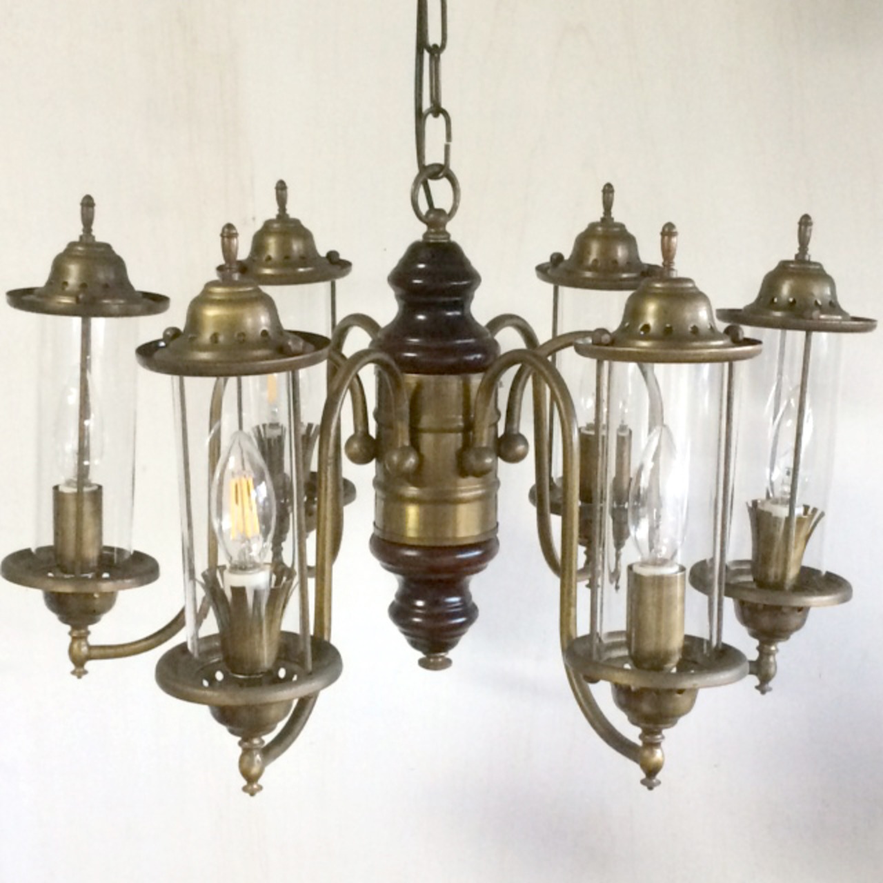 電球の真鍮製ソケットカバーが6灯のうち3灯が経年により裂けたように開いております。